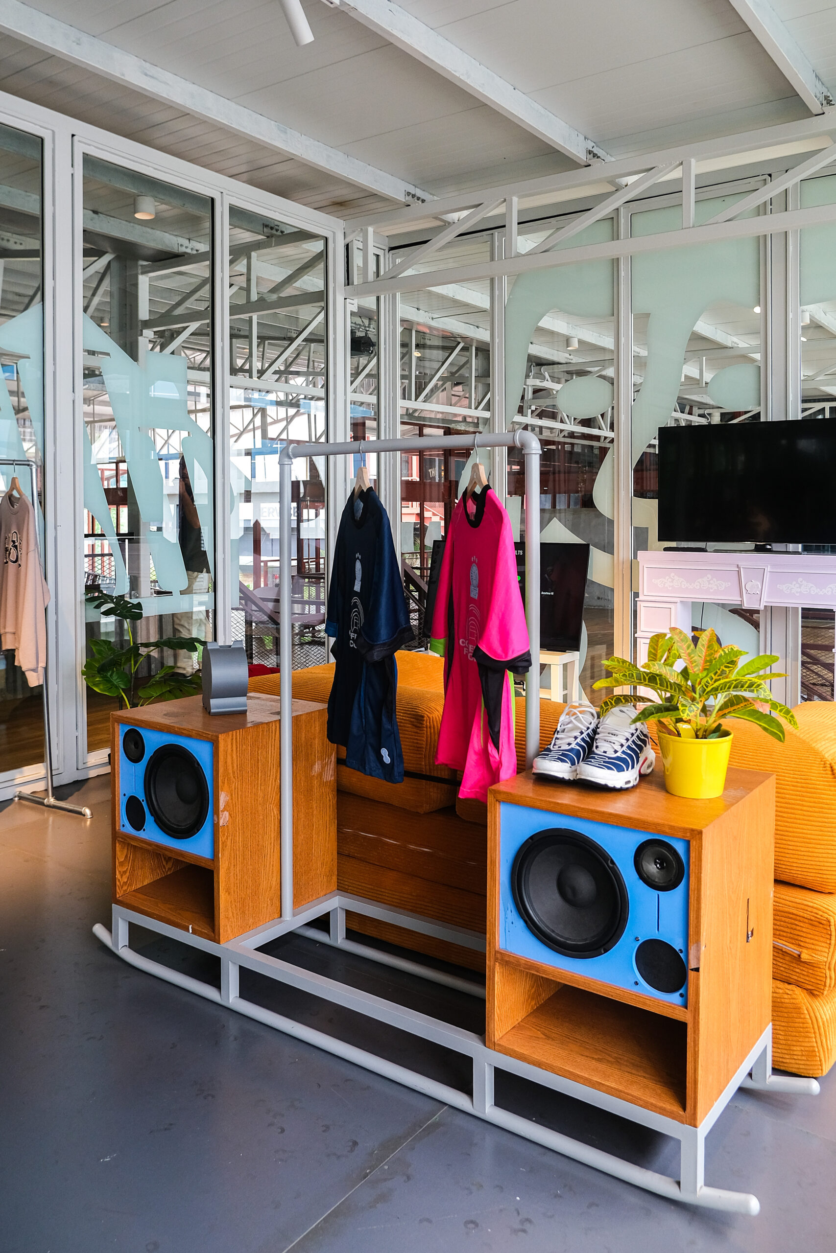 Designed to reflect the brand’s experimental and innovative essence, expect a palette of modern aesthetic layered with industrial-chic influences. Expansive glass façade bathes the space in natural light, while signature graphics brand the space with an unmistakable attitude. Sculptural vases, custom speaker installations and retro-inspired furniture inject a dose of personality, creating an atmosphere that’s both refined and raw.